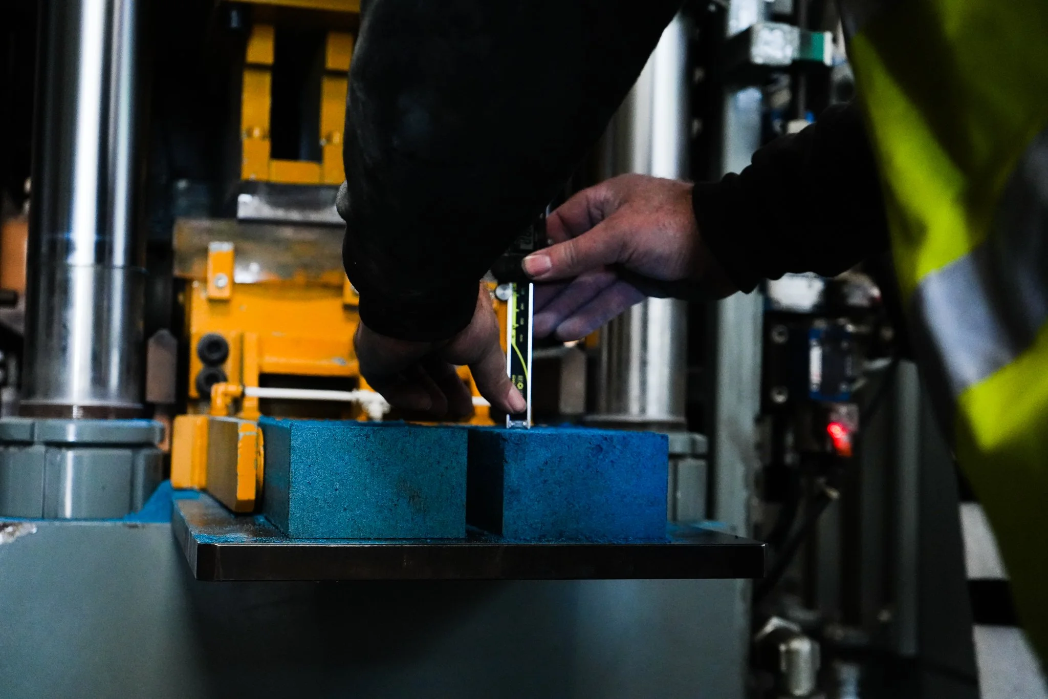 Unlike traditional clay bricks, which require significant energy and resources for manufacturing and typically utilise extrusion technology, our method employs hydraulic compression technology at high pressure to shape the products. This production process consumes less than 10% of the energy used in traditional brick production.